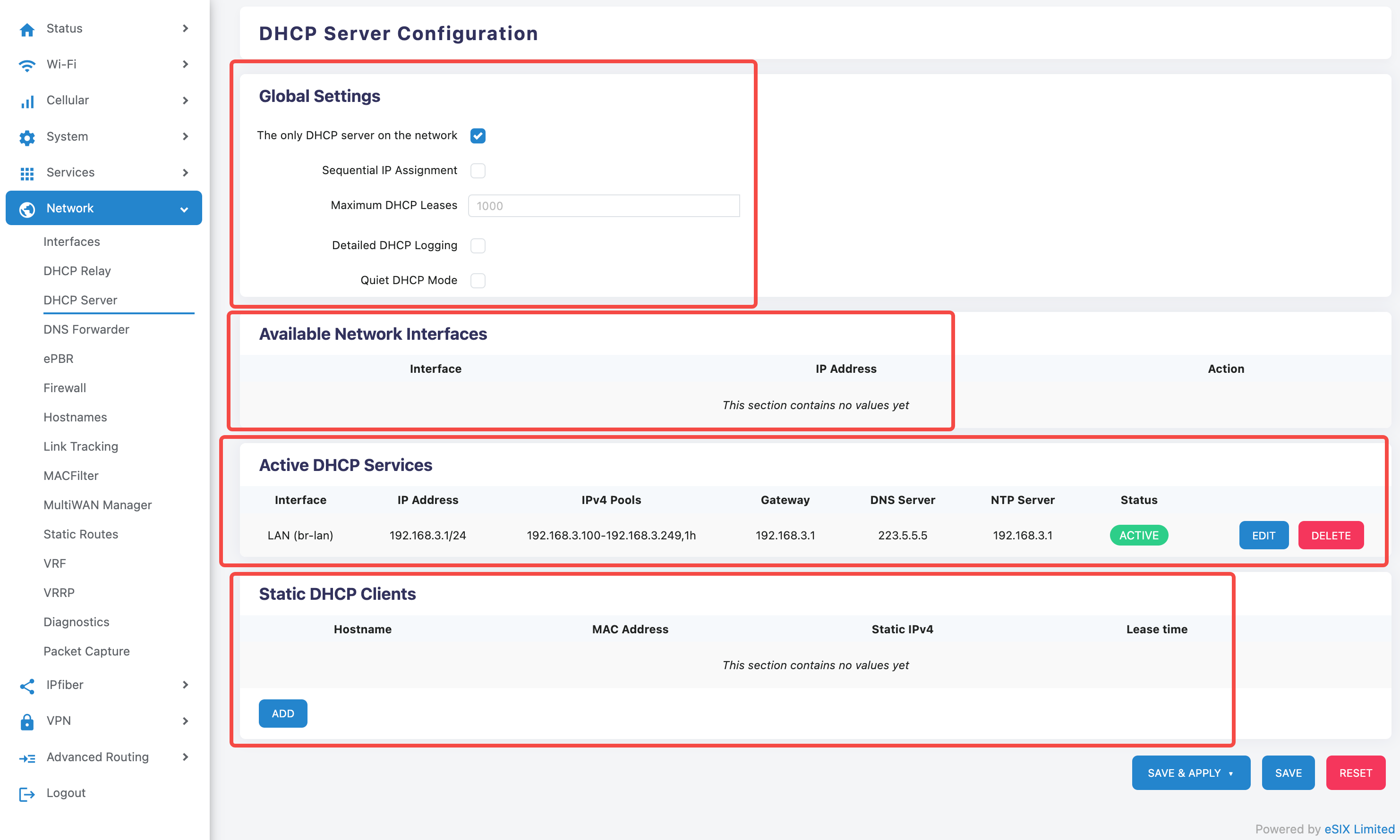 Remember to click "SAVE & APPLY" after making any configuration changes to make the configuration take effect.