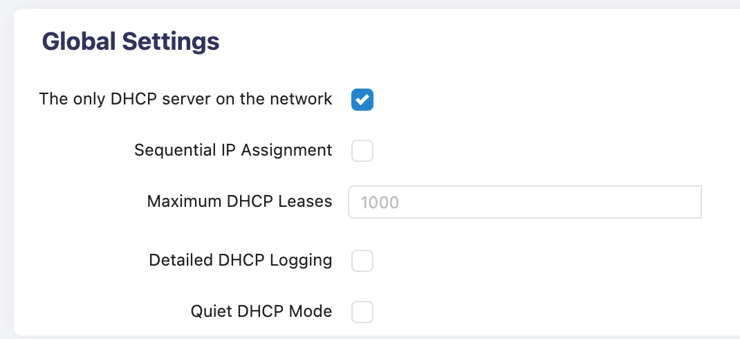 Maximum Number of DHCP Leases: Default 1000