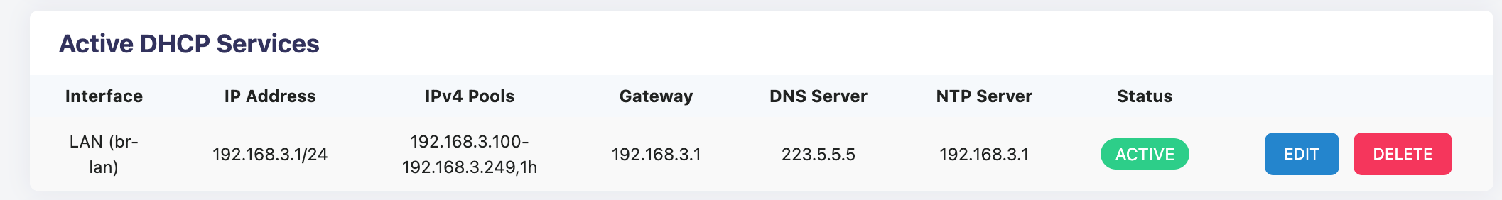 - NTP Server: 192.168.3.1