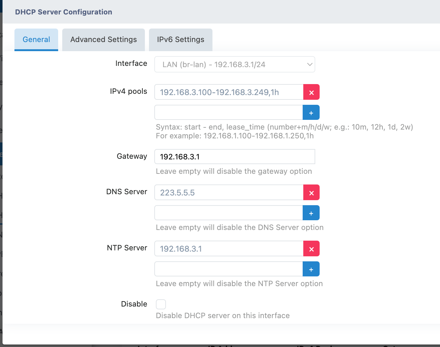 - IPv4 Address Pool: 192.168.3.100-192.168.3.249
