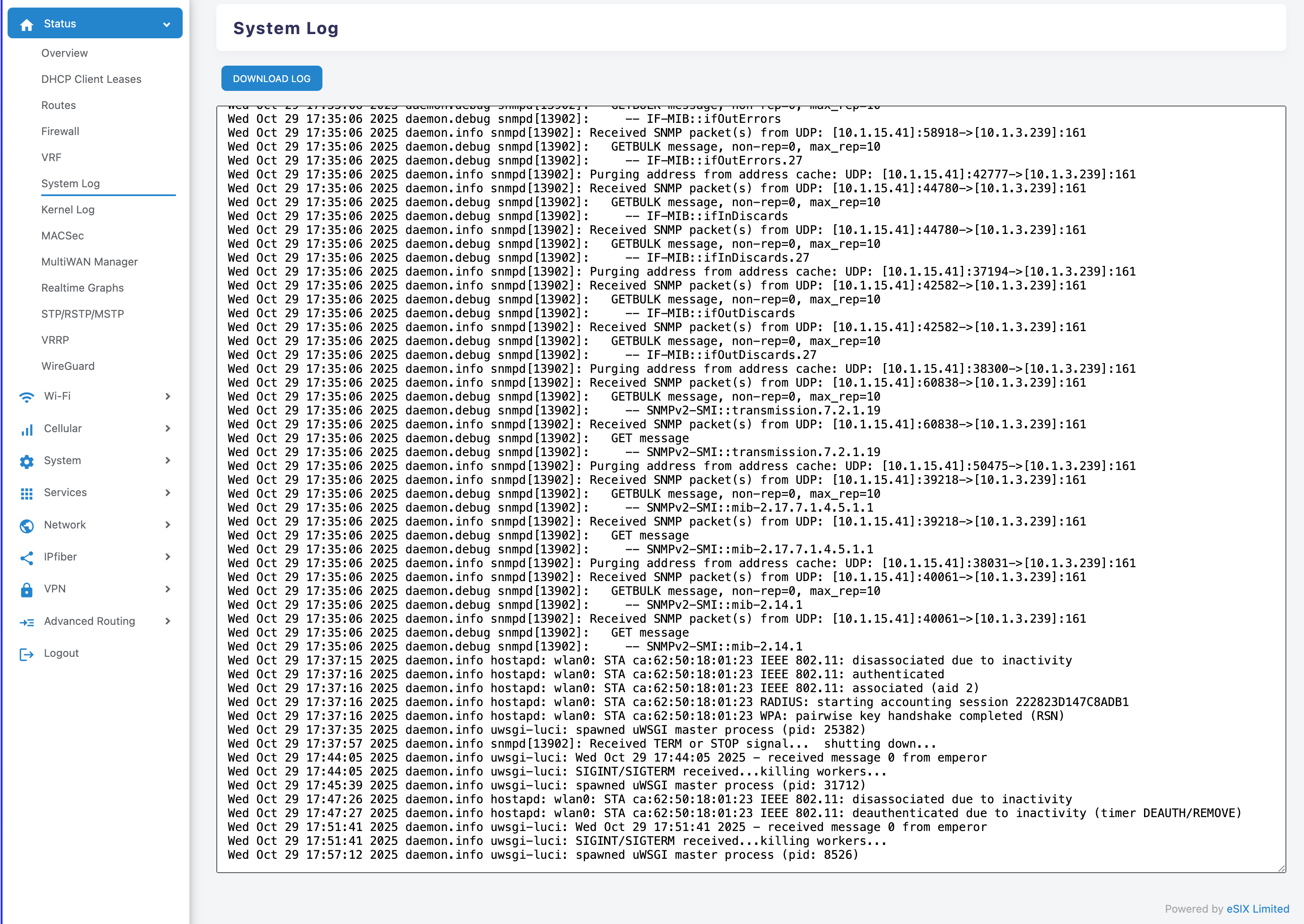 - Path: Status > System Log.