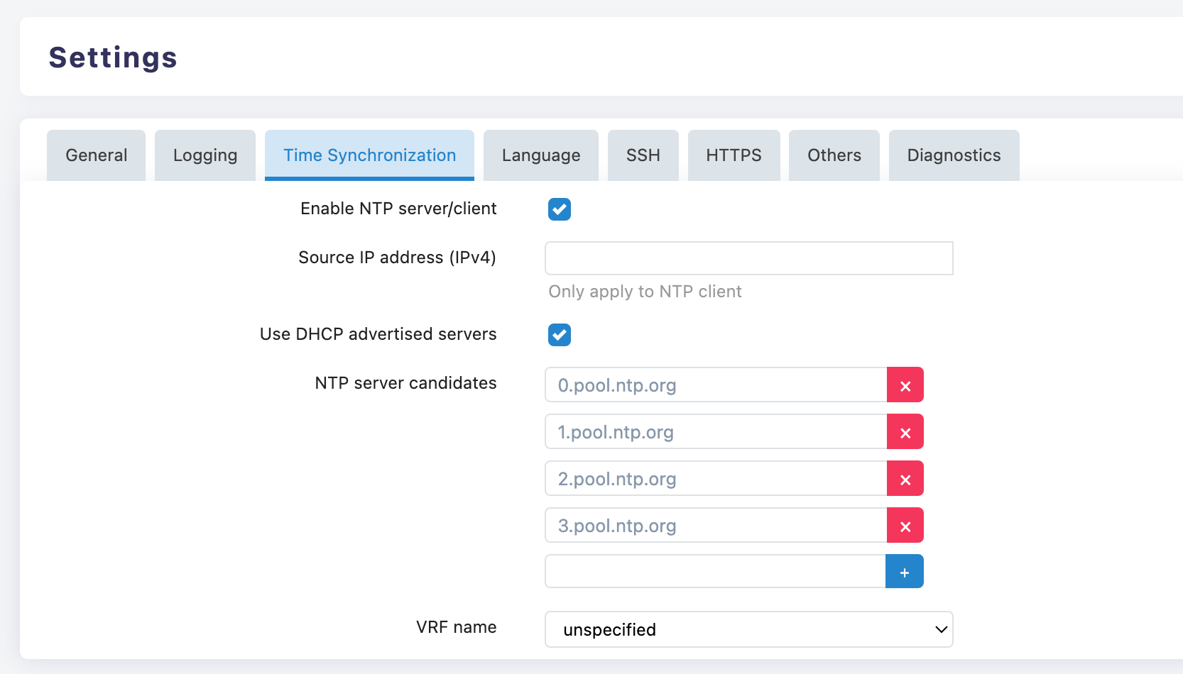 - ✅ Use DHCP advertised servers: When enabled, it will use the NTP servers recommended by the DHCP server