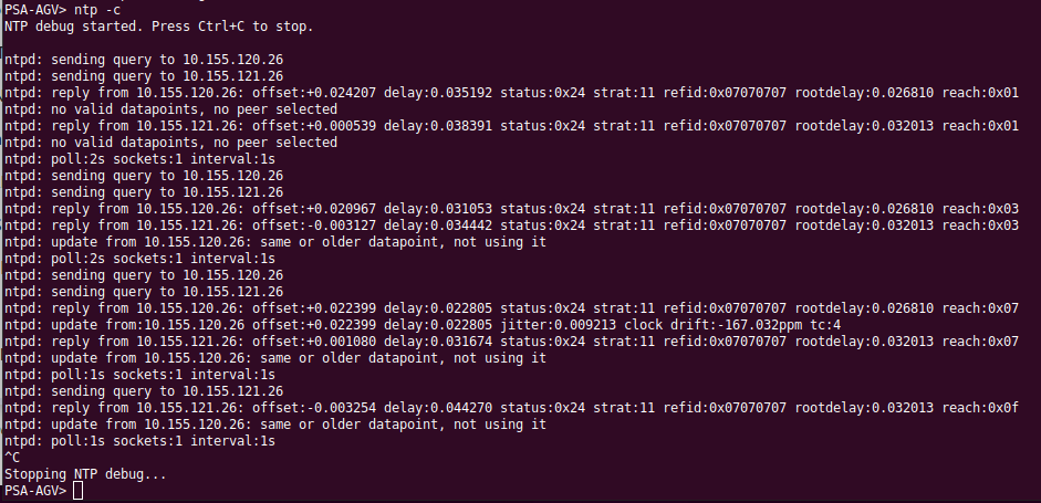 ntp -cIt shows how the NTP client sends query to server and