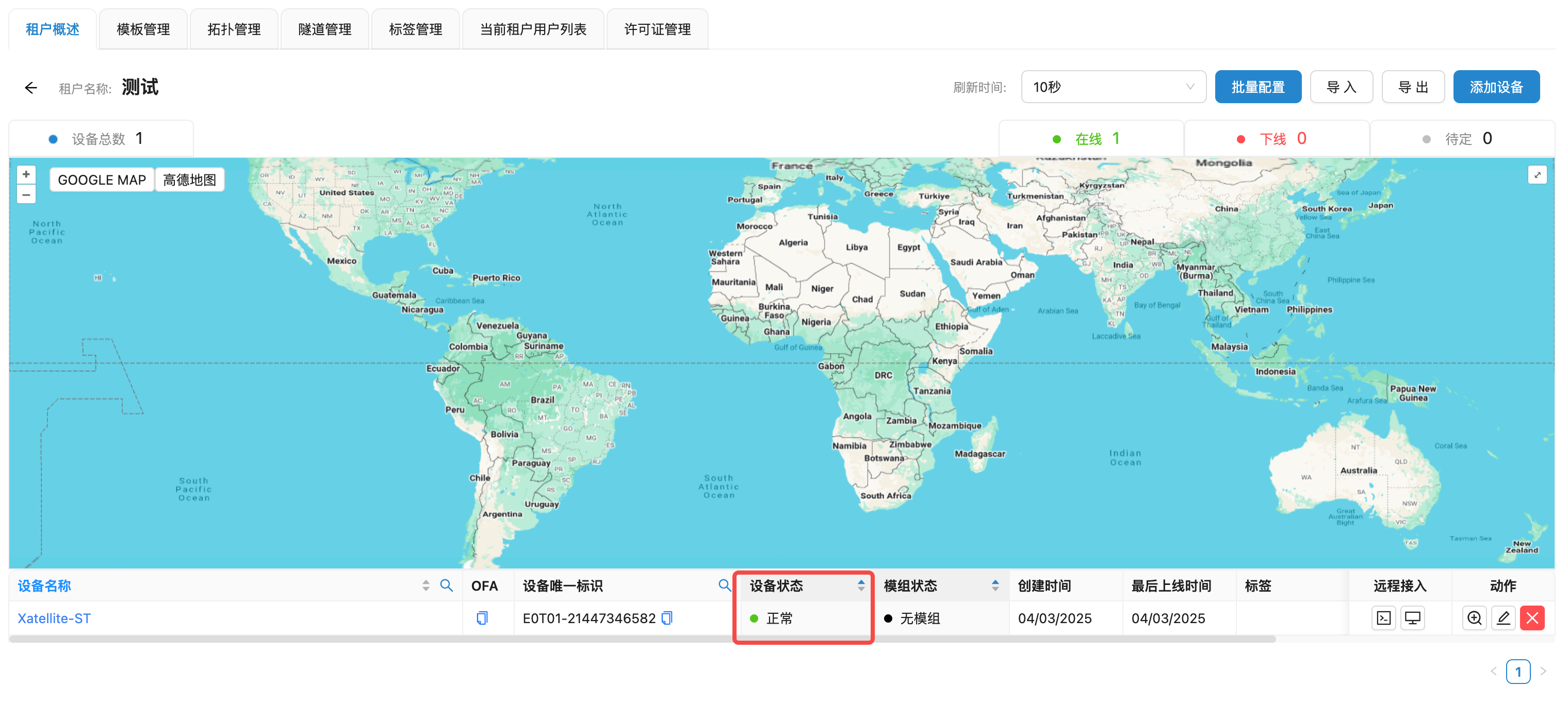 After the device is successfully connected, its status can be seen as 'normal' on the SDM management page.