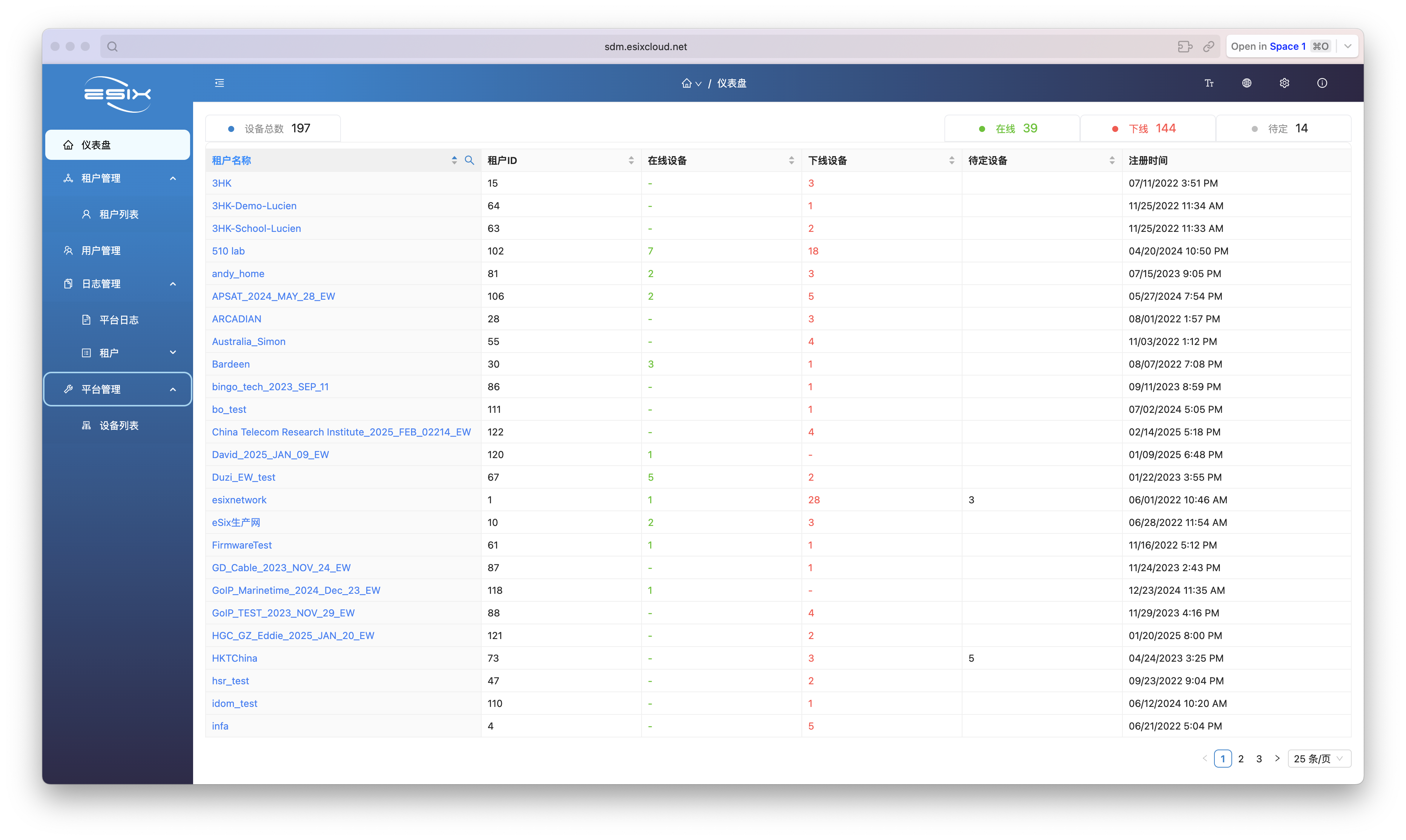 If the user is a platform administrator, they can see all tenants on the 'Dashboard' page.