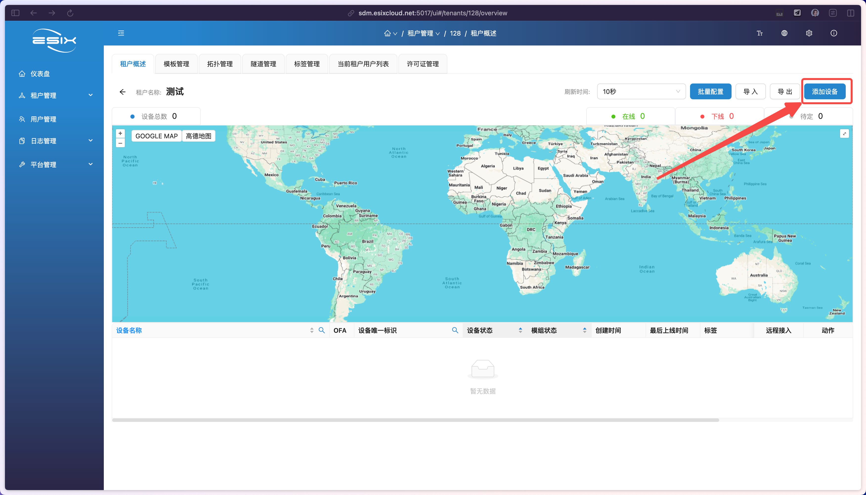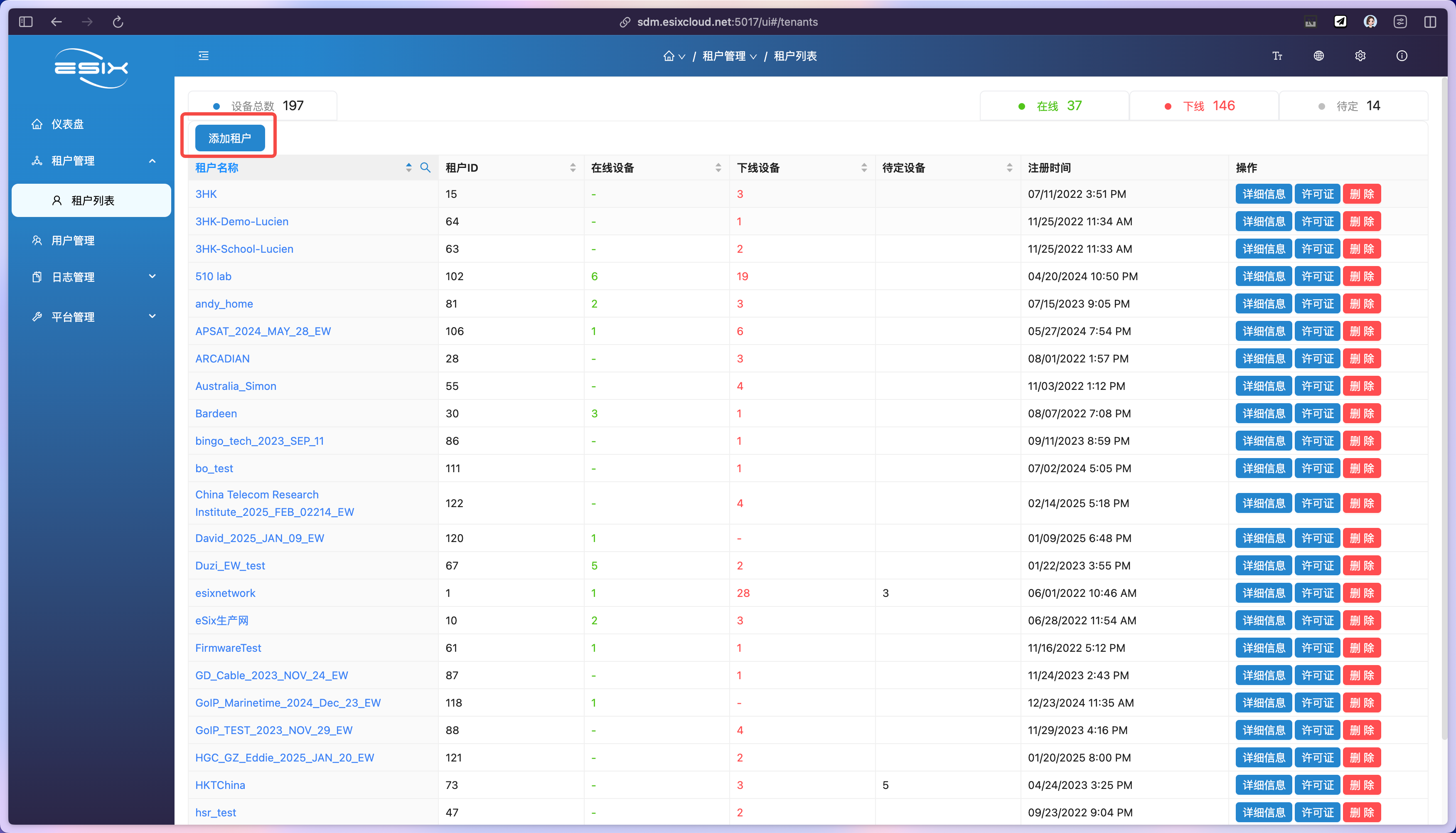 Enter 'Tenant Management > Tenant List' and click 'Add Tenant'