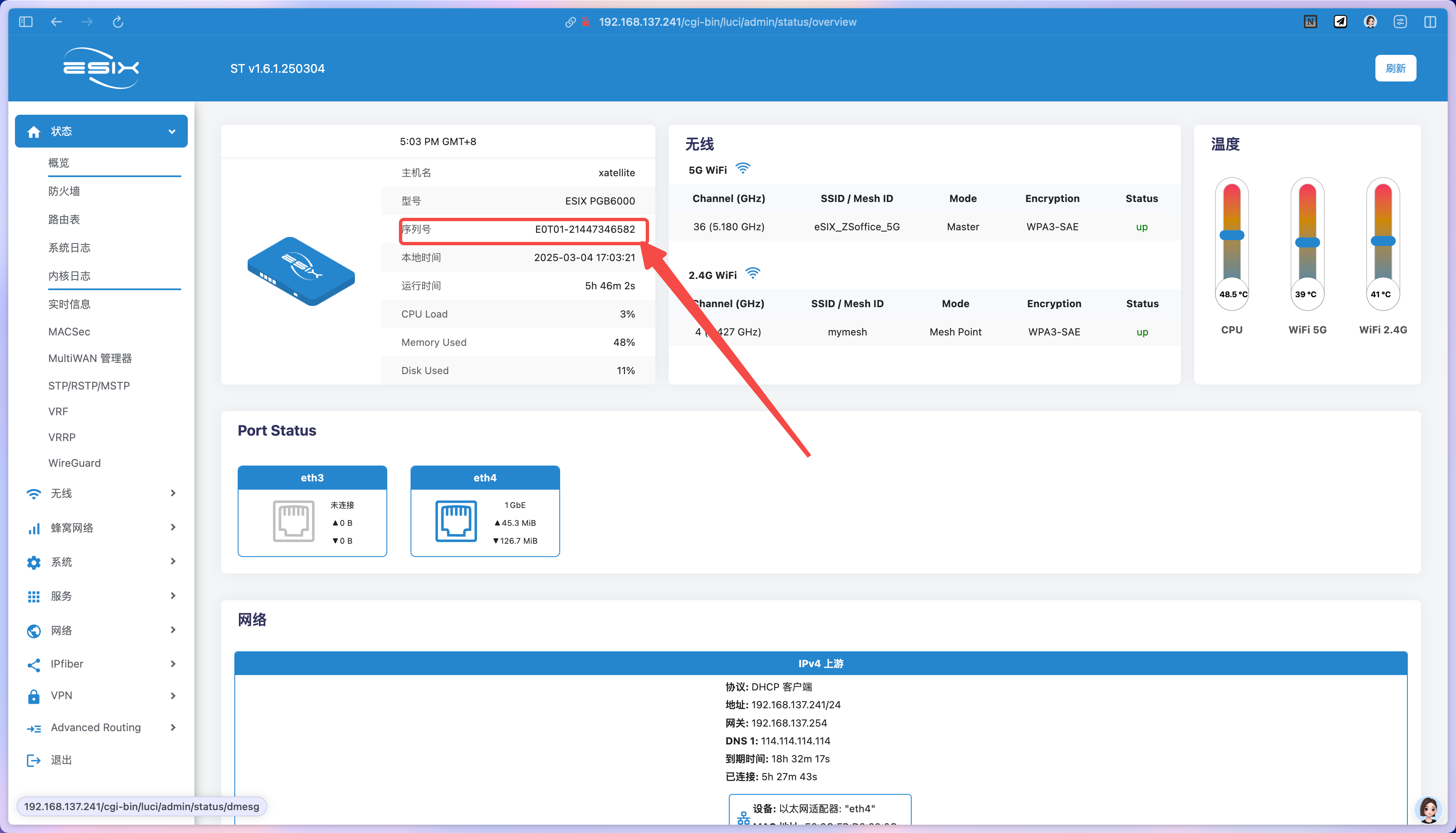 The unique identifier of the device is located in the 'Serial Number' on the 'Status > Overview' page of the ENOS system.