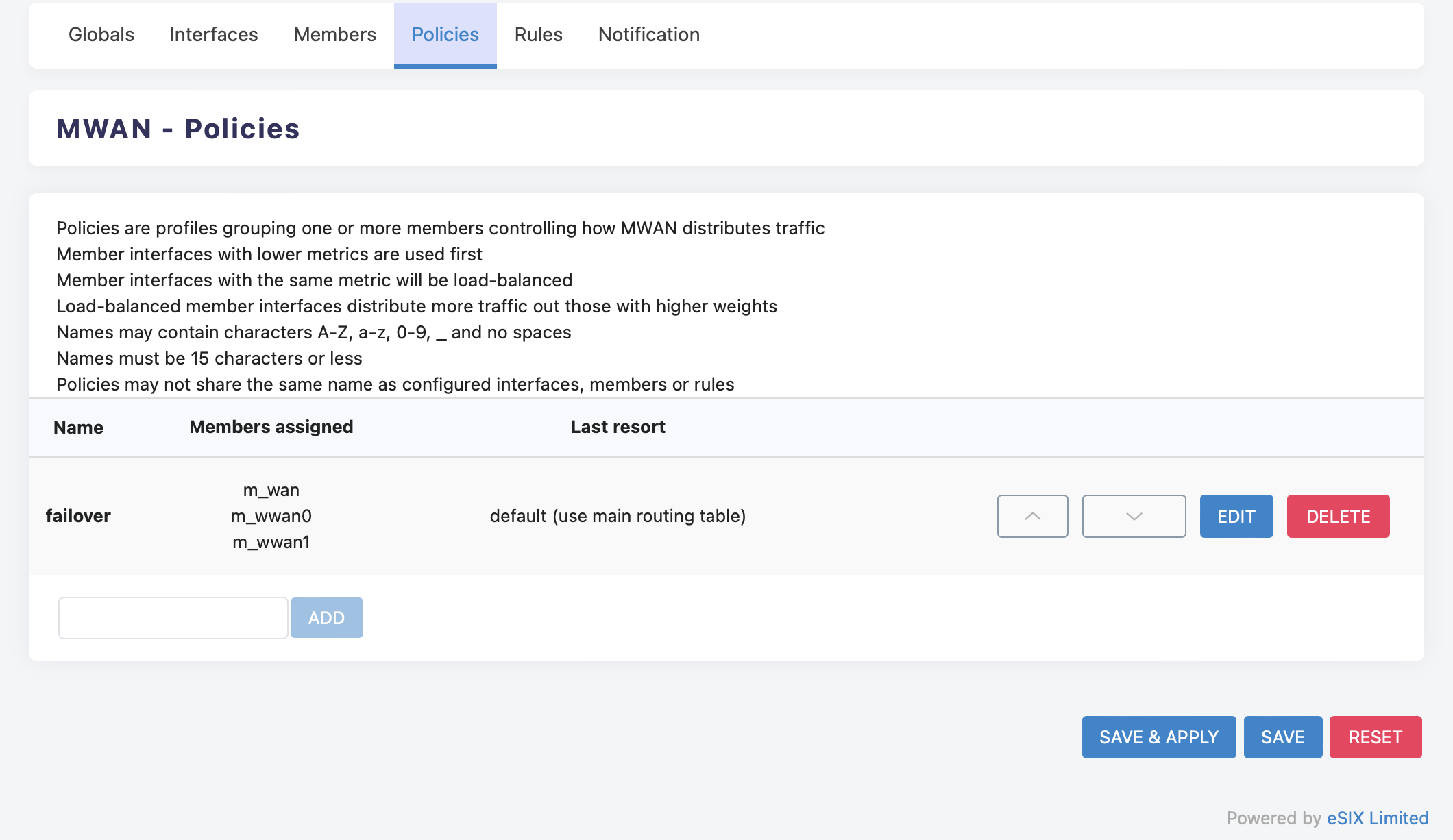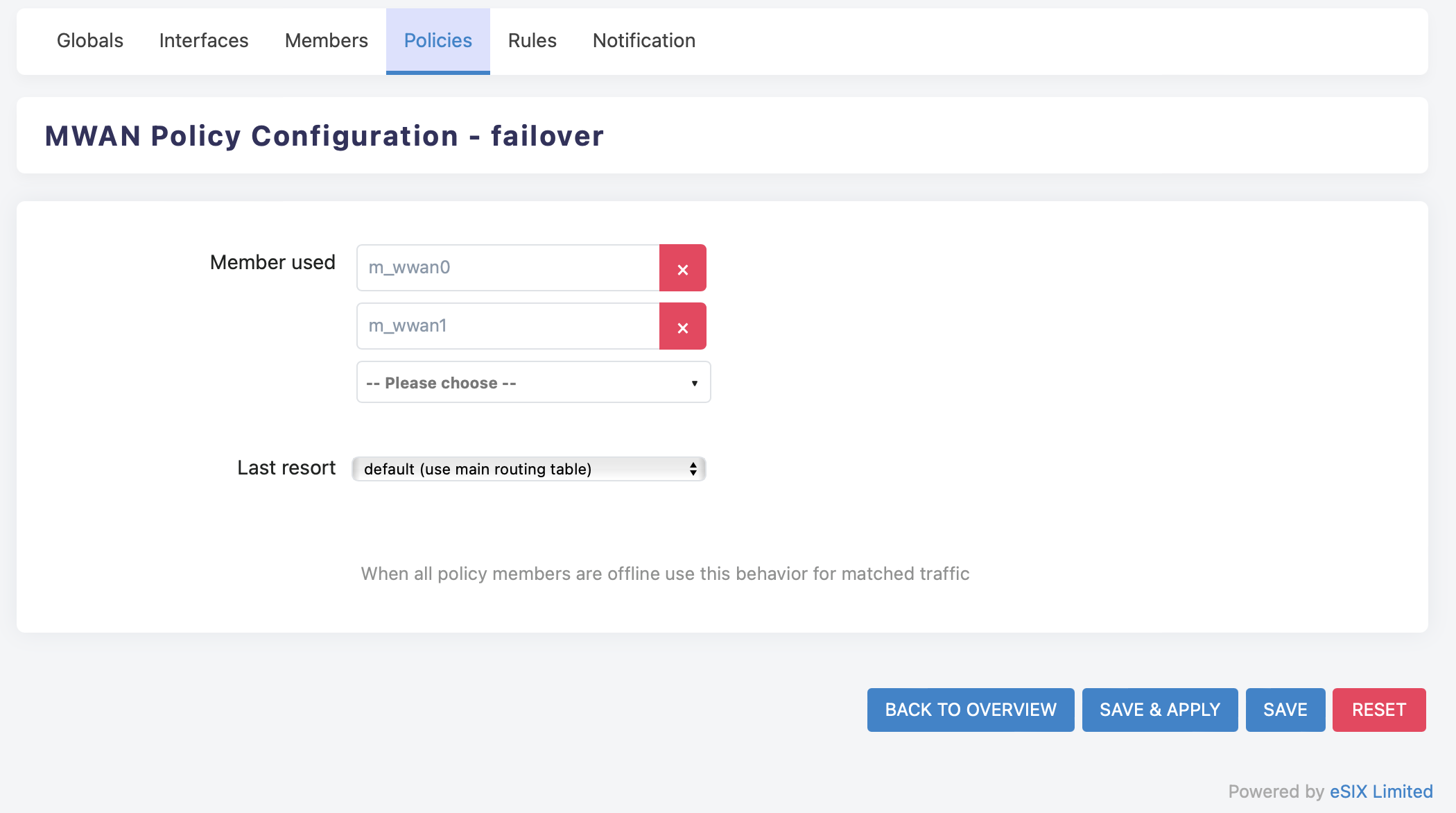If you want special connections such as HTTPS to go through a single egress link (for example, m_wwan0), you can also add a policy (for example, to which m_wwan0) has only one member.