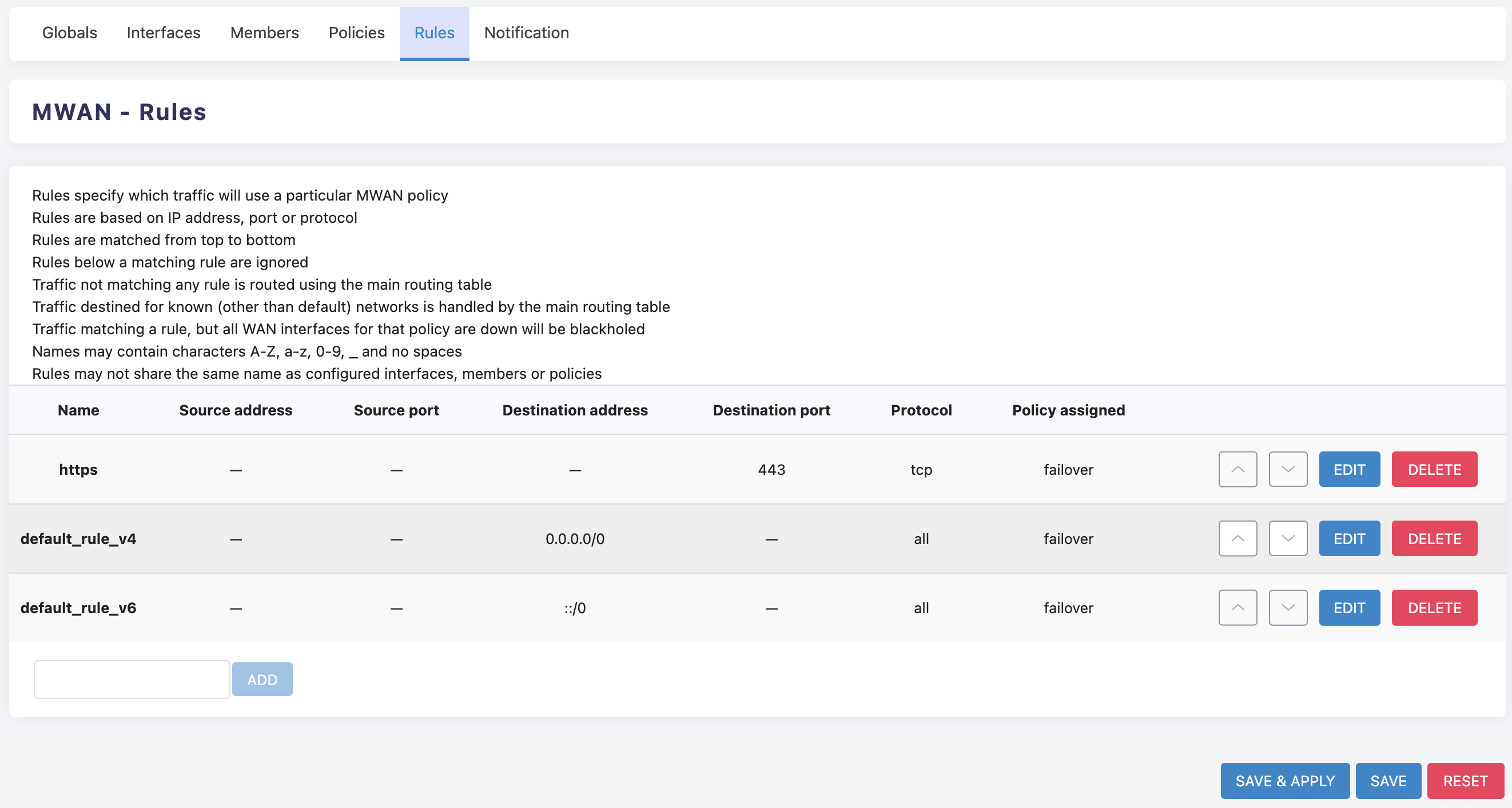 - Creating outbound traffic rules to customize which outbound connections should use which WAN interface (policy based routing). This can be customised based on source IP, destination IP, source port(s), destination port(s), type of IP protocol etc