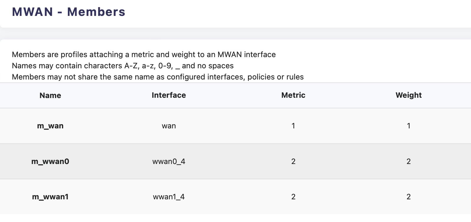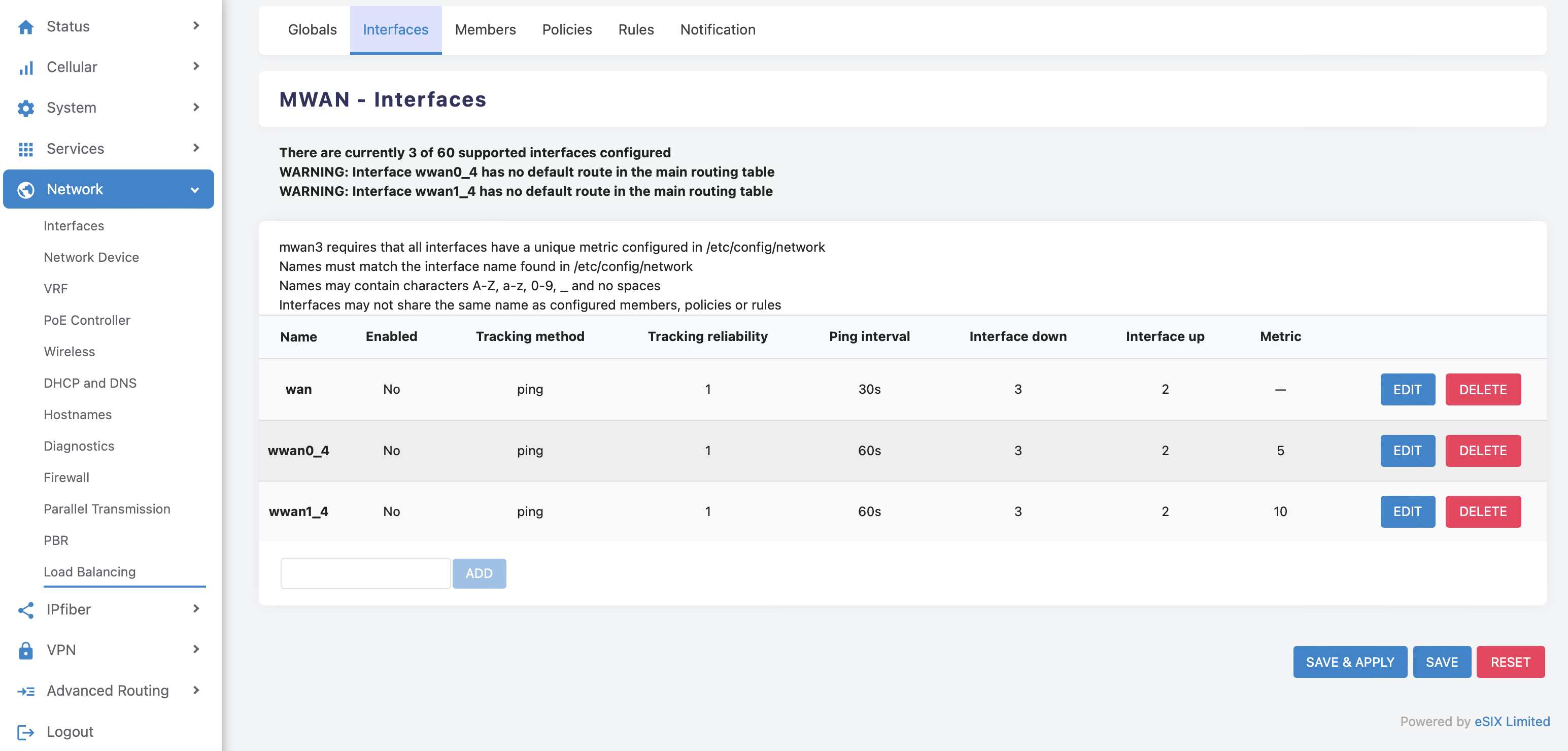 Note: The Metric of each interface using the Load Balancing policy must be different.