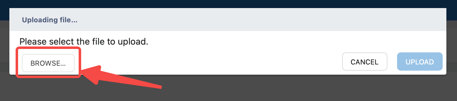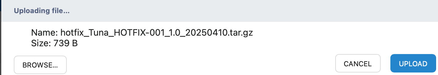 Click the BROWSE button, select the Hotfix file, and click UPLOAD.