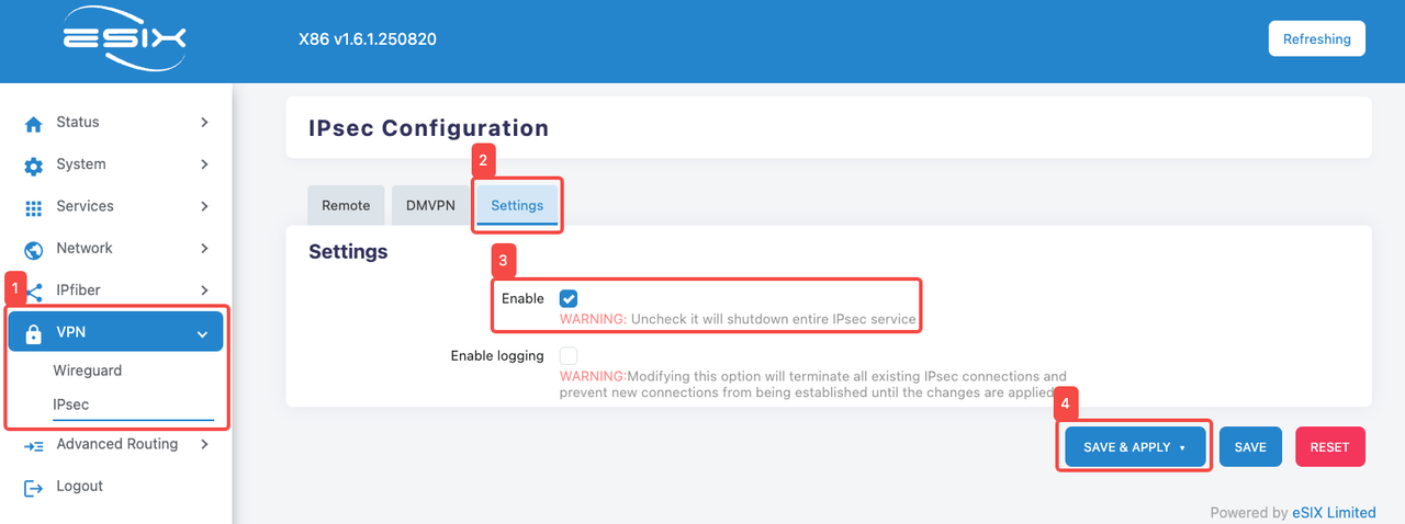 - Click "Enable" to enable the "IPSEC" function