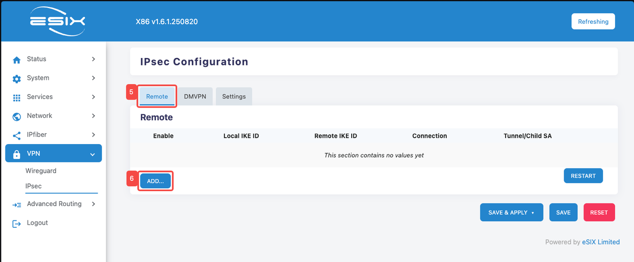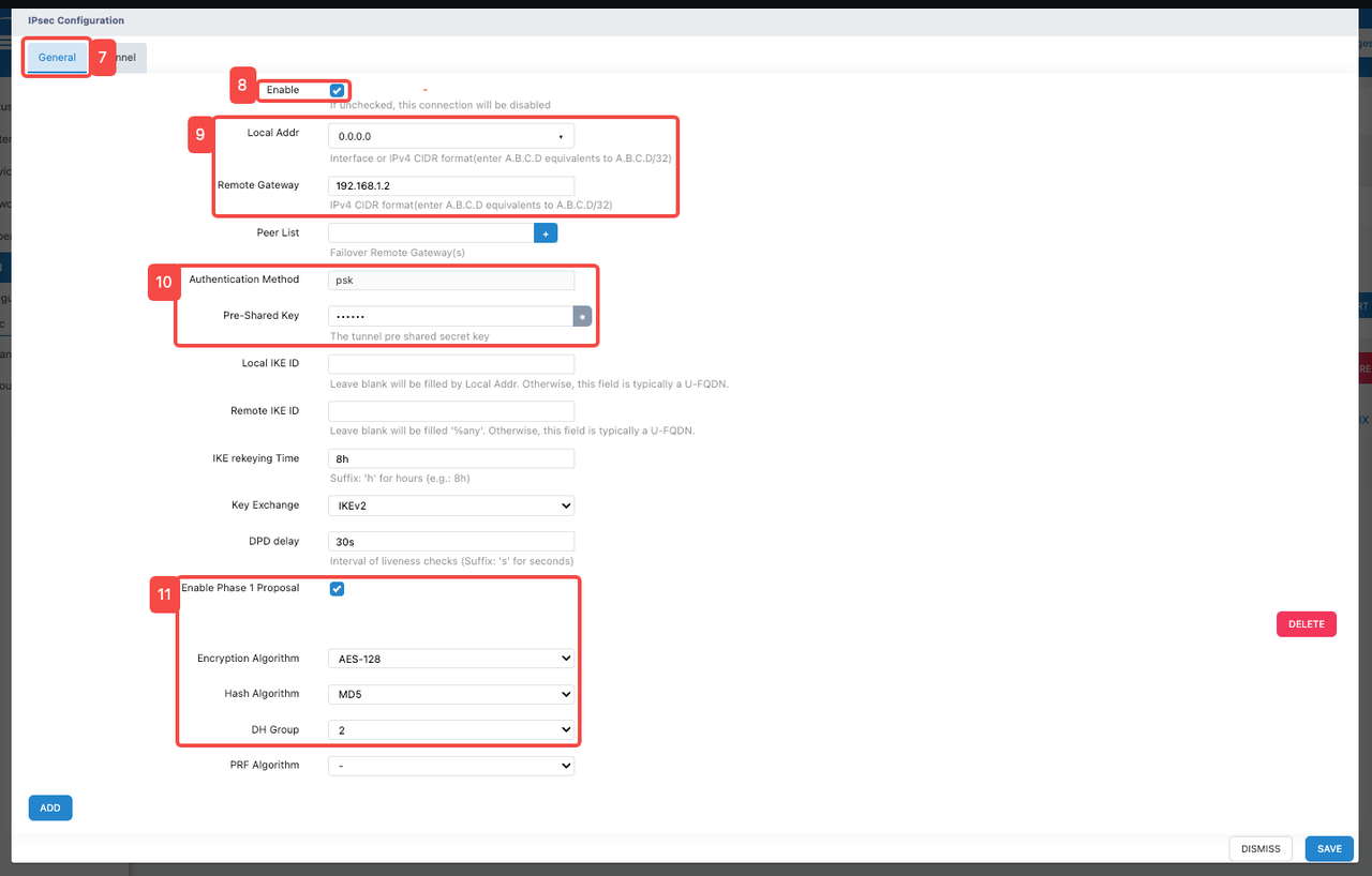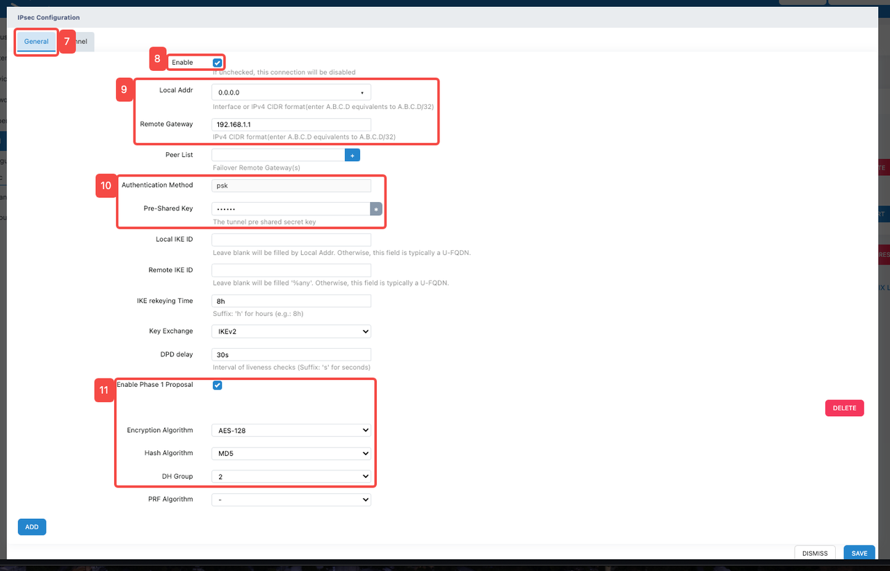 - Enter IPSEC configuration interface